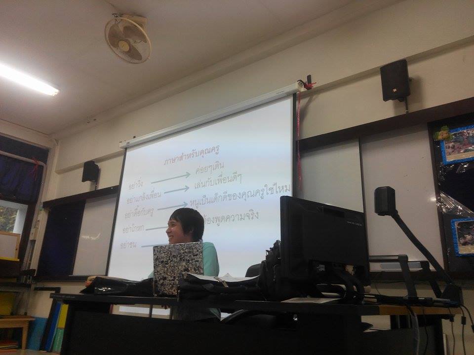 - ในระหว่างการเรียนมีกิจกรรมให้นักศึกษามีส่วนร่วม คือ การร้องเพลงตามจังหวะซึ่งจะจับส่วน ต่าง ๆ ของร่ายกาย นอกจากนี้ยังได้เรียนรู้การใช้คำพูดในลักษณะที่ควรกับเด็กปฐมวัยเพราะในเด็กปฐมวัยจะชื่นชอบคุณครูที่พูดเพราะ อ่อนหวาน น้ำเสียงที่นุ่มนวล และไม่ควรพูดคำว่า “อย่า” หรือ “ไม่” กับเด็กปฐมวัยเด็ดขาดมีวิธีการพูดที่กว่า เช่น